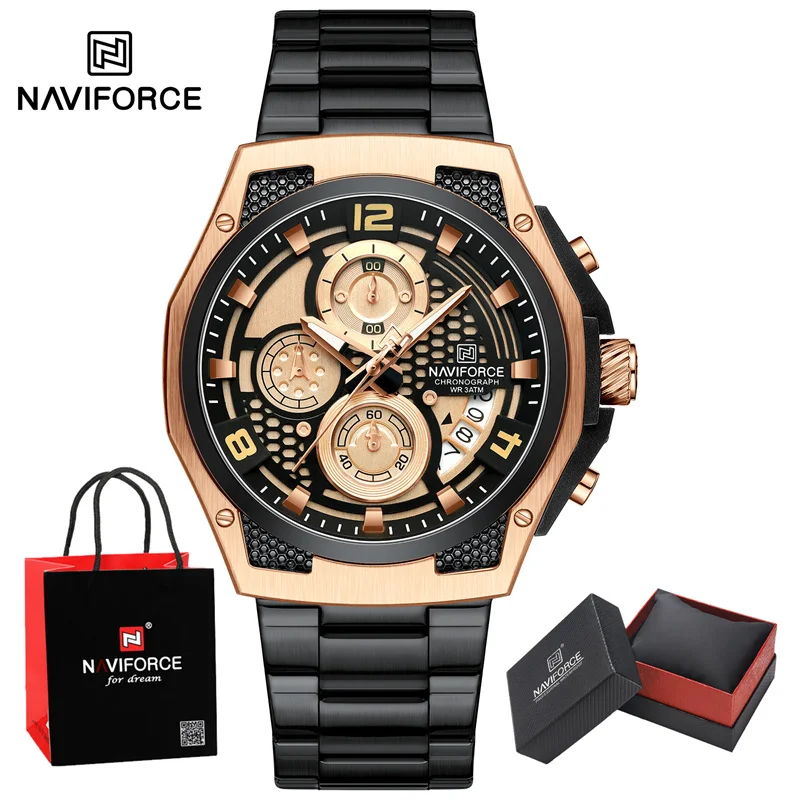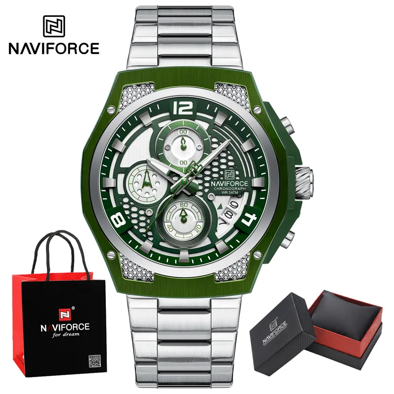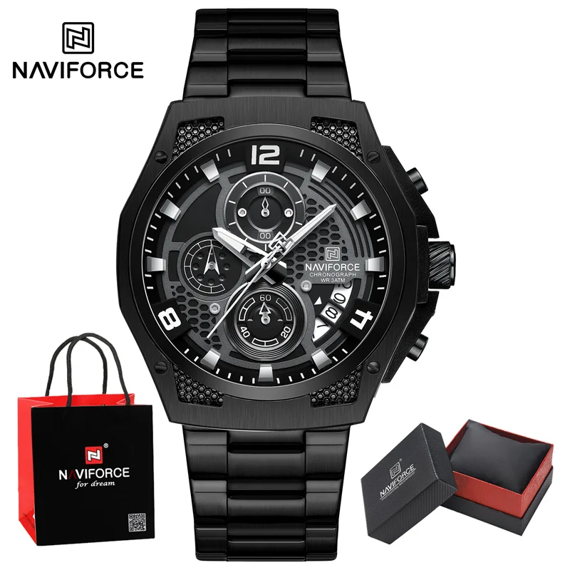 NAVIFORCE Business Watches for Men Fashion Stainless Steel Quartz Chronograph Waterproof WristWatch Male In Luxury Package Gifts